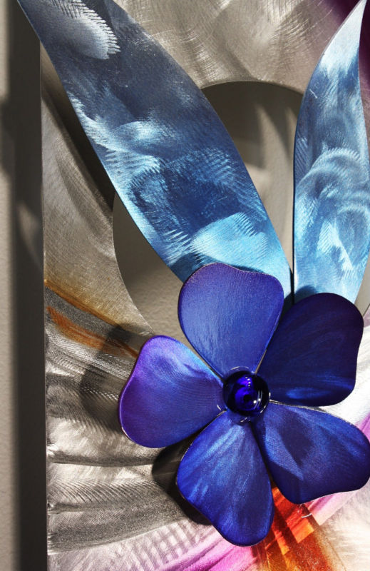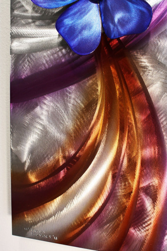 | | Original Flower Metal Wall Art Wall Decor Painted Sculpture - W431Description Floral Metal Wall Art Sculpture, Flower Metal Home Decor, Wall Decor, Design by NY Artist Alex Kovacs. DIMENSIONS: 30" HIGH X 8" WIDE X 3" DEEP. Availability: Some of my sculptures I have in stock and others are made to order. Either way, it will ship out in 1 to 2 weeks. My sculptures are made of the highest grade industrial aluminum available. This sculpture is not a machine shop made mass produced item. Each sculpture is original, exclusively designed and hand made by me, Alex Kovacs. The quality of my work exceeds anything you can find anywhere in the world, when it comes to this kind of metal art. The transparent anodized enamel that I use is specially developed for aluminum. The colors are protected by the "lacquer" coating that is actually urethane, blocks out the harmful ultra violet rays of the sun. The hangers and the spacers are hand fabricated from aluminum also and designed to line up the plates accurately for the multi panel wall sculptures. The "swirling" designs are hand grinded into the metal. My famous "holographic" effects that I developed in 2006 and perfected in color in this metal art form, comes to life at any light source one can imagine of, no matter how weak this light source is. This is a main feature in my work that is so often duplicated worldwide. Just about all metal artists who have decided to hijacked my style, my designs and technique, are trying to profit from this popular "merchandise". If this sculpture is available, I'll send it on its way the next day after it is purchased and paid for. If it is sold already and you like to have one, I will make it up for you. If you need any changes done to it, let me know. I could not possibly "clone" it the exact same way again, due to the fact that I make them freehand. However it is safe to say, that the one you will get will be even nicer than the sculpture in this listing, due to that I am getting better at it as the time flies by. The average sculpture takes about ten days to complete before it is in the mail, which also includes the drying time. You can feel safe and secure when purchasing my work, for the past 46 years or so I had only satisfied customers. Also, PayPal has a 100% money return policy to protect you from wrong doings and is the safest money transfer institution available worldwide. For your custom needs, please contact me. Sincerely, Alex Kovacs | If you would like to make some changes to any of my items, please contact me.